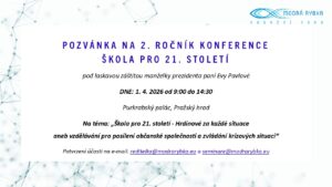 ✨ Srdečně zveme všechny ředitele škol, odborné pedagogy, ředitele dětských domovů a sociální pracovníky na konferenci 📅 1. 4. 2026 | 9:00–14:30 | Purkrabský palác, Pražský hrad